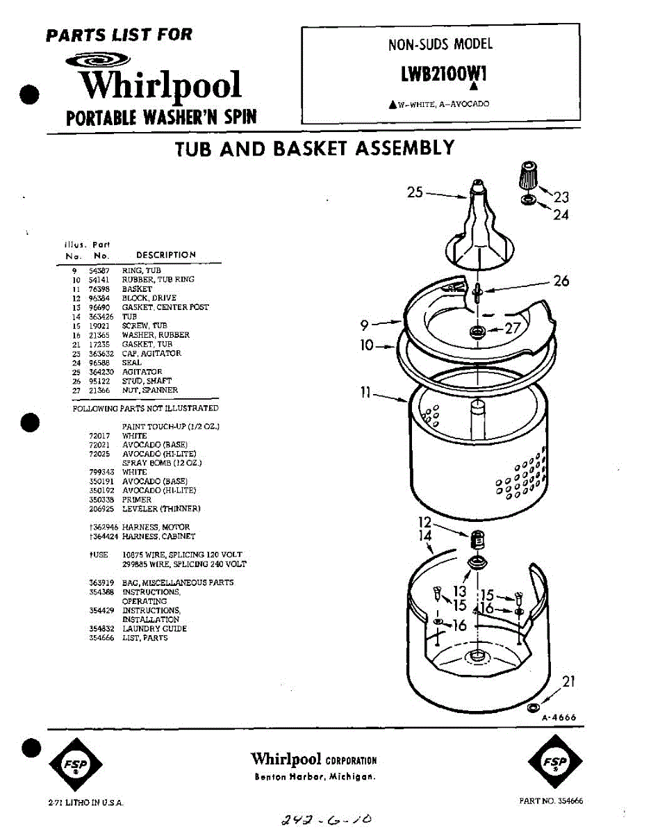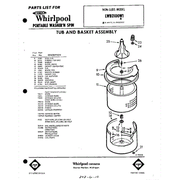 Parts for Whirlpool LWB2100W1: 01 - Tub And Basket , Lit / Optional Parts