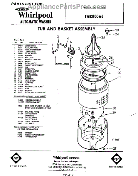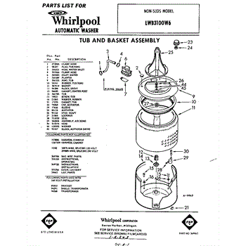 Parts for Whirlpool LWB3100W6: 01 - Tub And Basket , Lit / Optional Parts