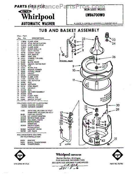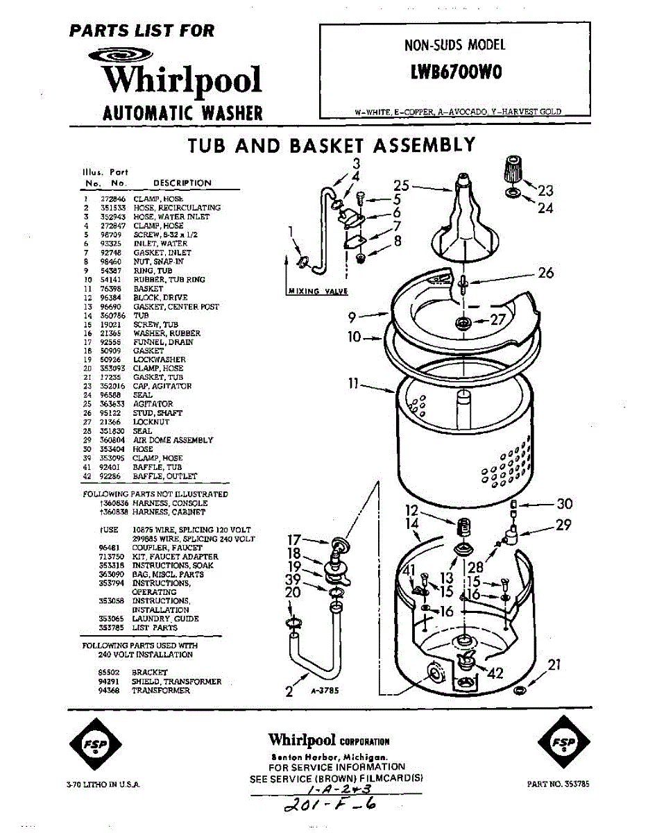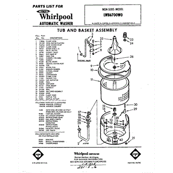 Parts for Whirlpool LWB6700W0: 01 - Tub And Basket , Lit / Optional Parts