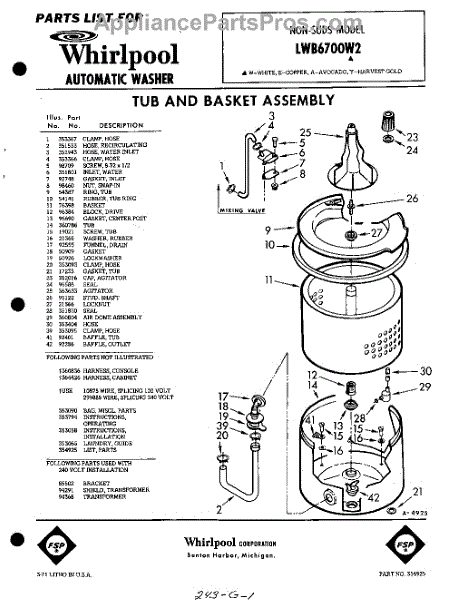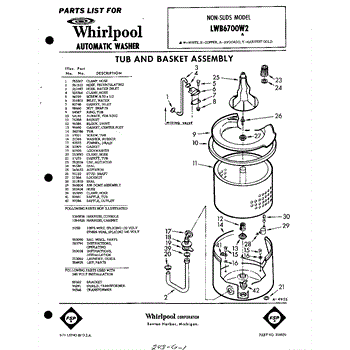 Parts for Whirlpool LWB6700W2: 01 - Tub And Basket , Lit / Optional Parts