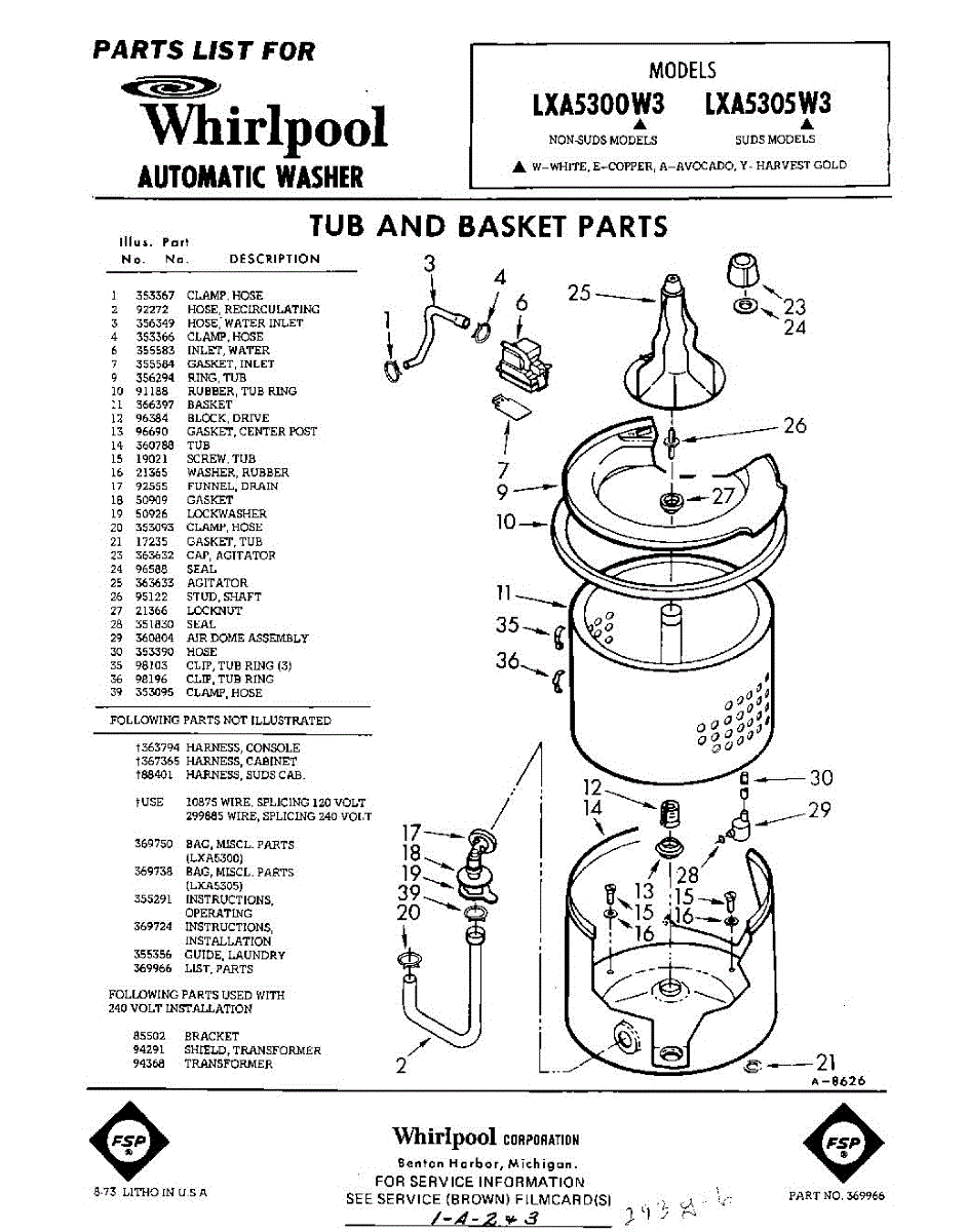 Parts for Whirlpool LXA5305W3: 01 - Tub And Basket , Lit / Optional Parts
