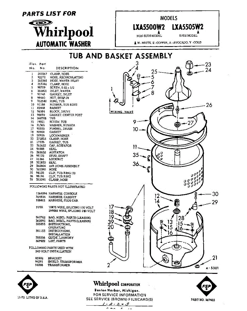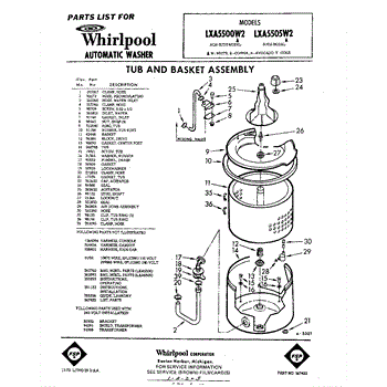 Parts for Whirlpool LXA5500W2: 01 - Tub And Basket , Lit / Optional Parts