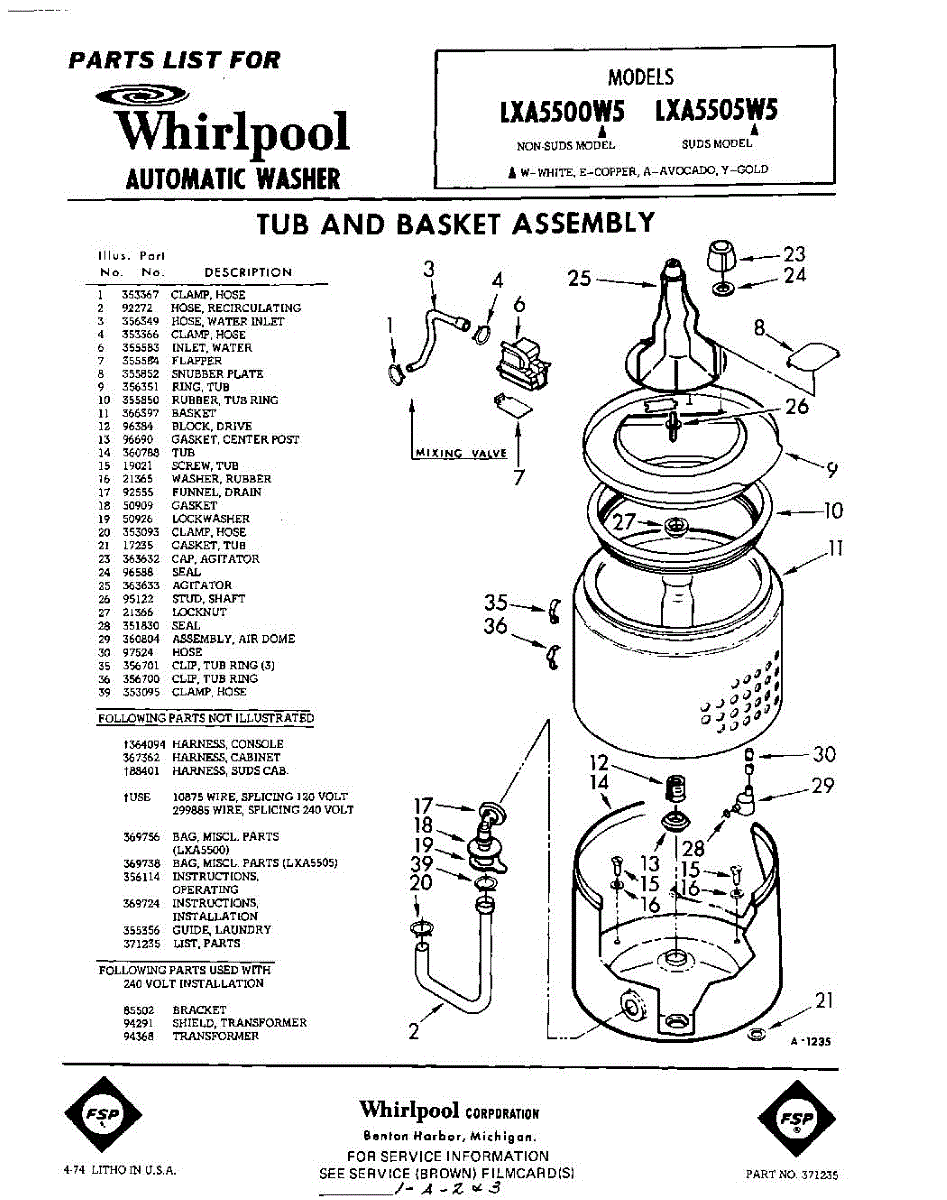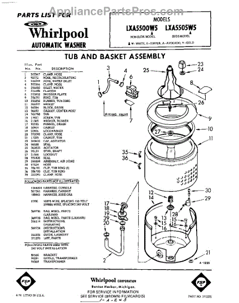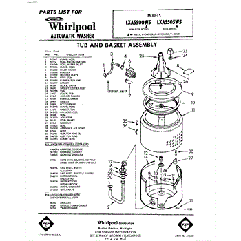 Parts for Whirlpool LXA5500W5: 01 - Tub And Basket , Lit / Optional Parts