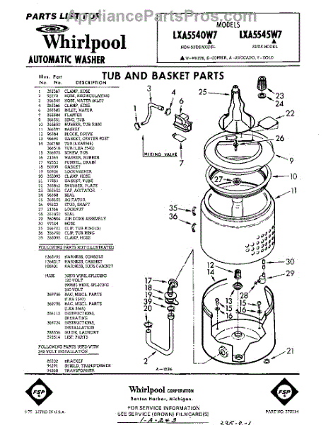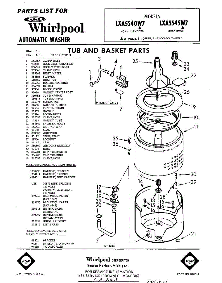 Parts for Whirlpool LXA5545W7: 01 - Tub And Basket , Lit / Optional Parts