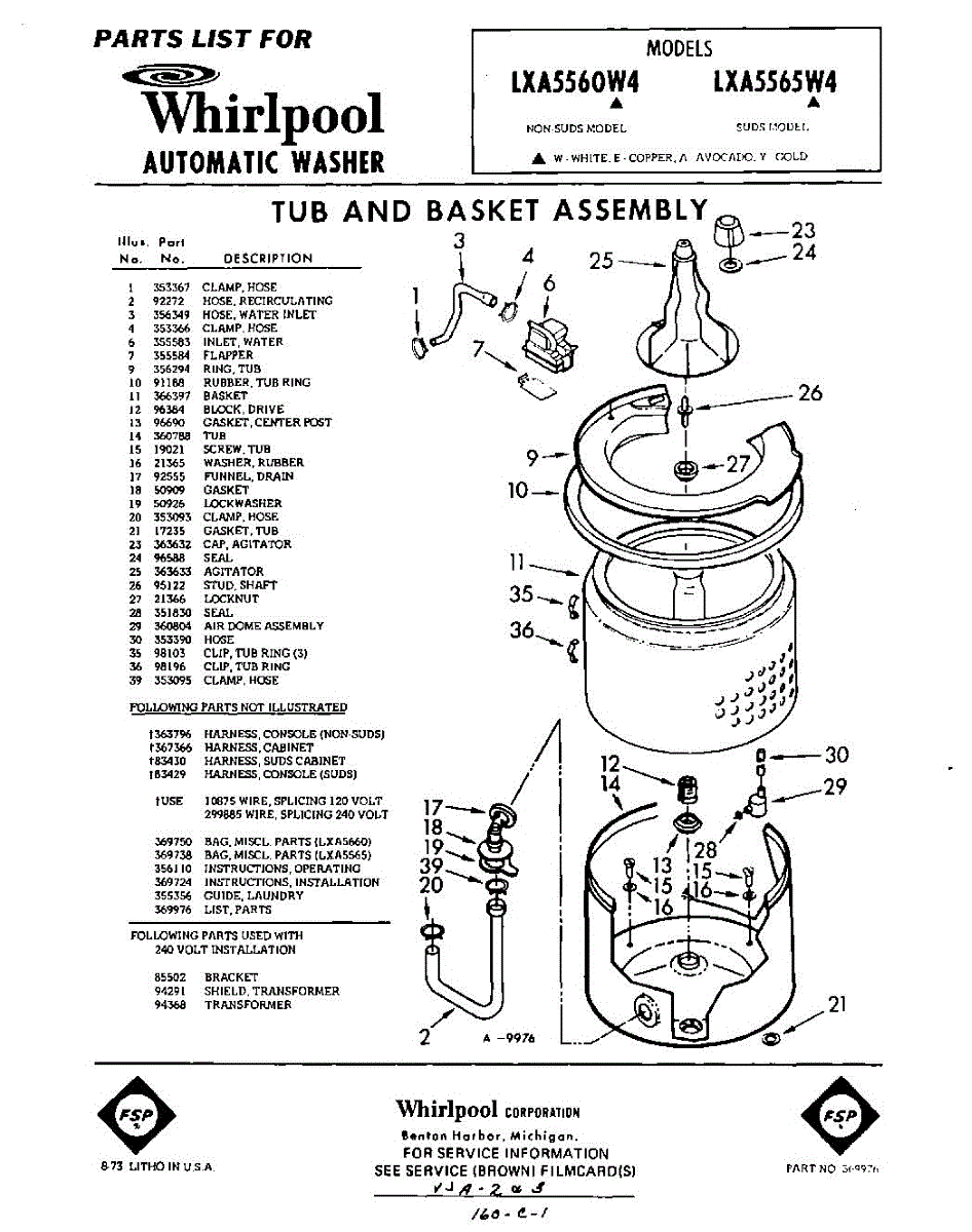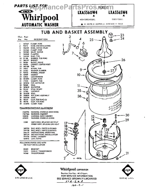 Parts for Whirlpool LXA5560W4: 01 - Tub And Basket, Lit / Optional Parts