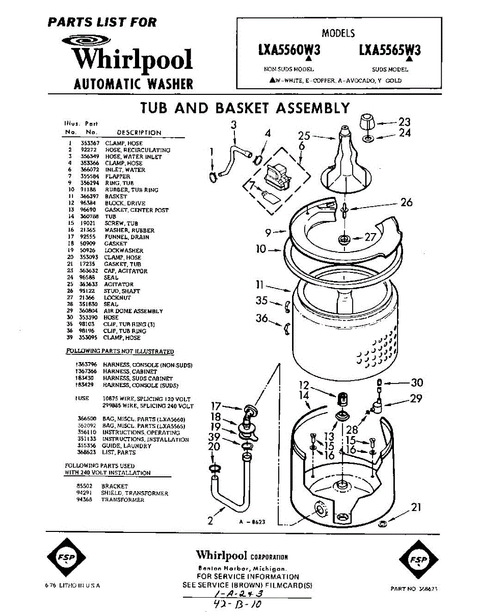 Parts for Whirlpool LXA5565W3: 01 - Tub And Basket, Lit / Optional Parts
