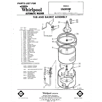 Parts for Whirlpool LXA5810W1: 01 - Tub And Basket , Lit / Optional Parts