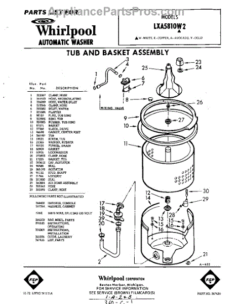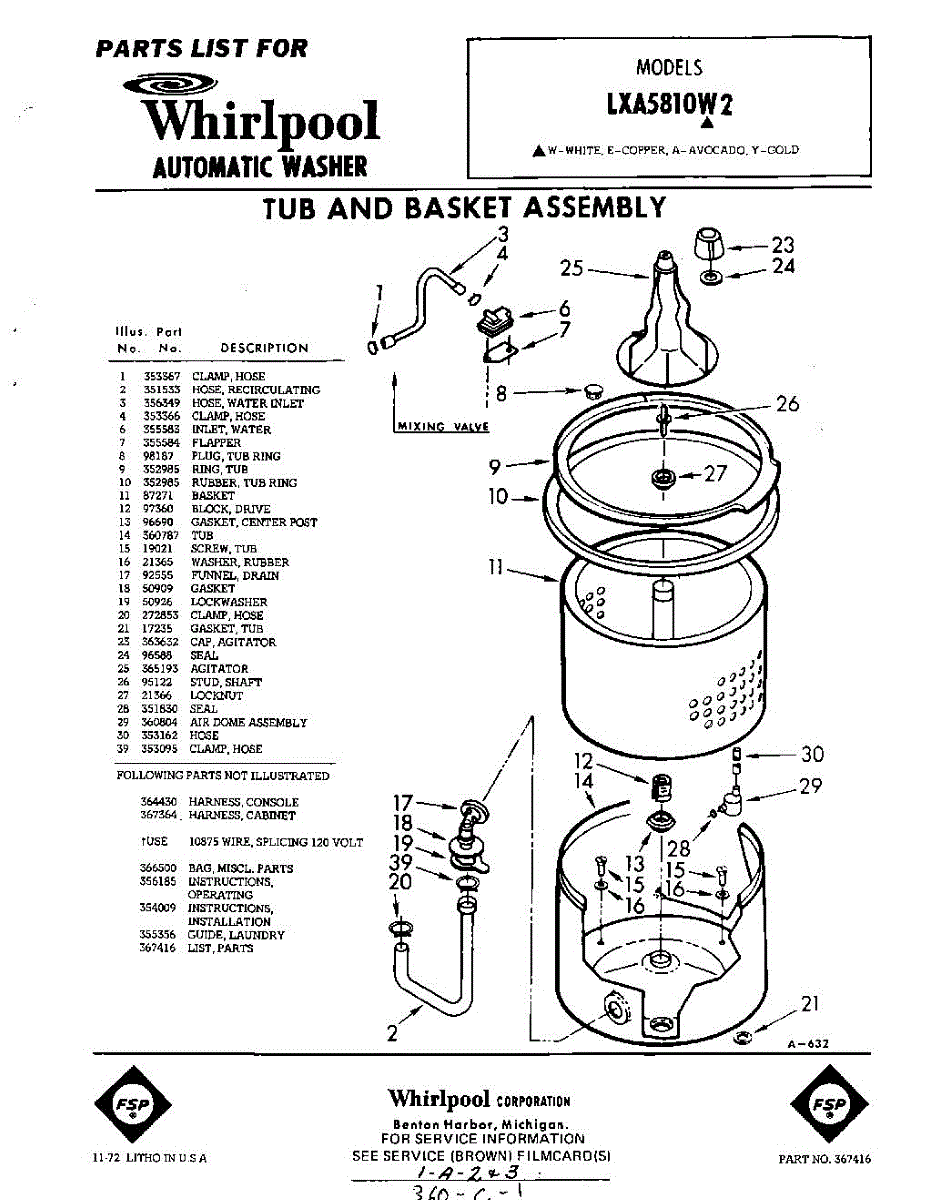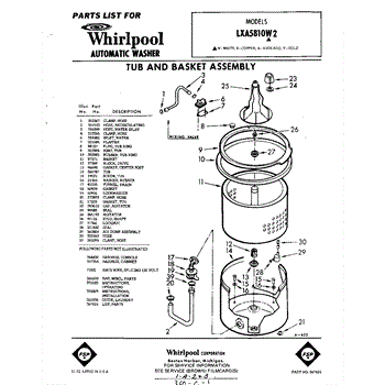 Parts for Whirlpool LXA5810W2: 01 - Tub And Basket , Lit / Optional Parts