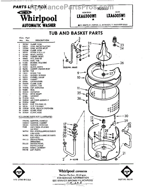 Parts for Whirlpool LXA6300W1: 01 - Tub And Basket , Lit / Optional Parts