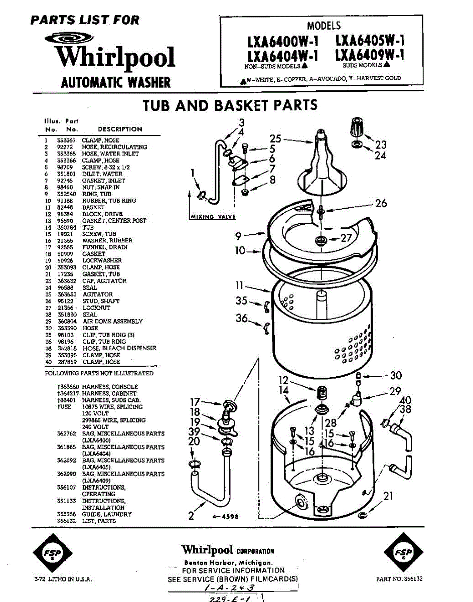 Parts for Whirlpool LXA6404W1: 01 - Tub And Basket , Lit / Optional Parts