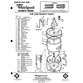 Parts for Whirlpool LXA6409W0: 01 - Tub And Basket , Lit / Optional Parts
