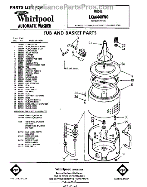 Parts for Whirlpool LXA6440W0: 01 - Tub And Basket , Lit / Optional Parts