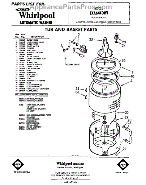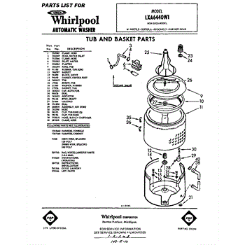 Parts for Whirlpool LXA6440W1: 01 - Tub And Basket , Lit / Optional Parts