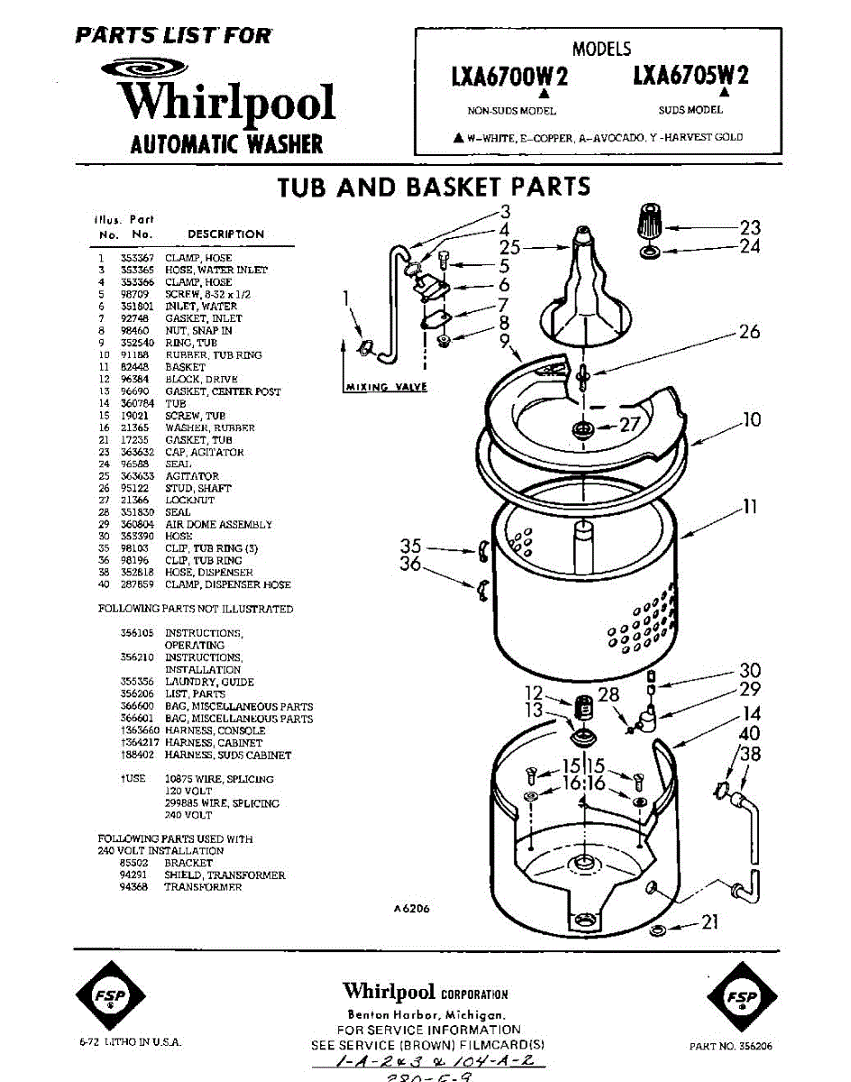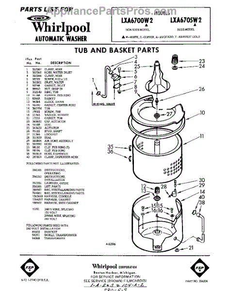 Parts for Whirlpool LXA6700W2: 01 - Tub And Basket , Lit / Optional Parts