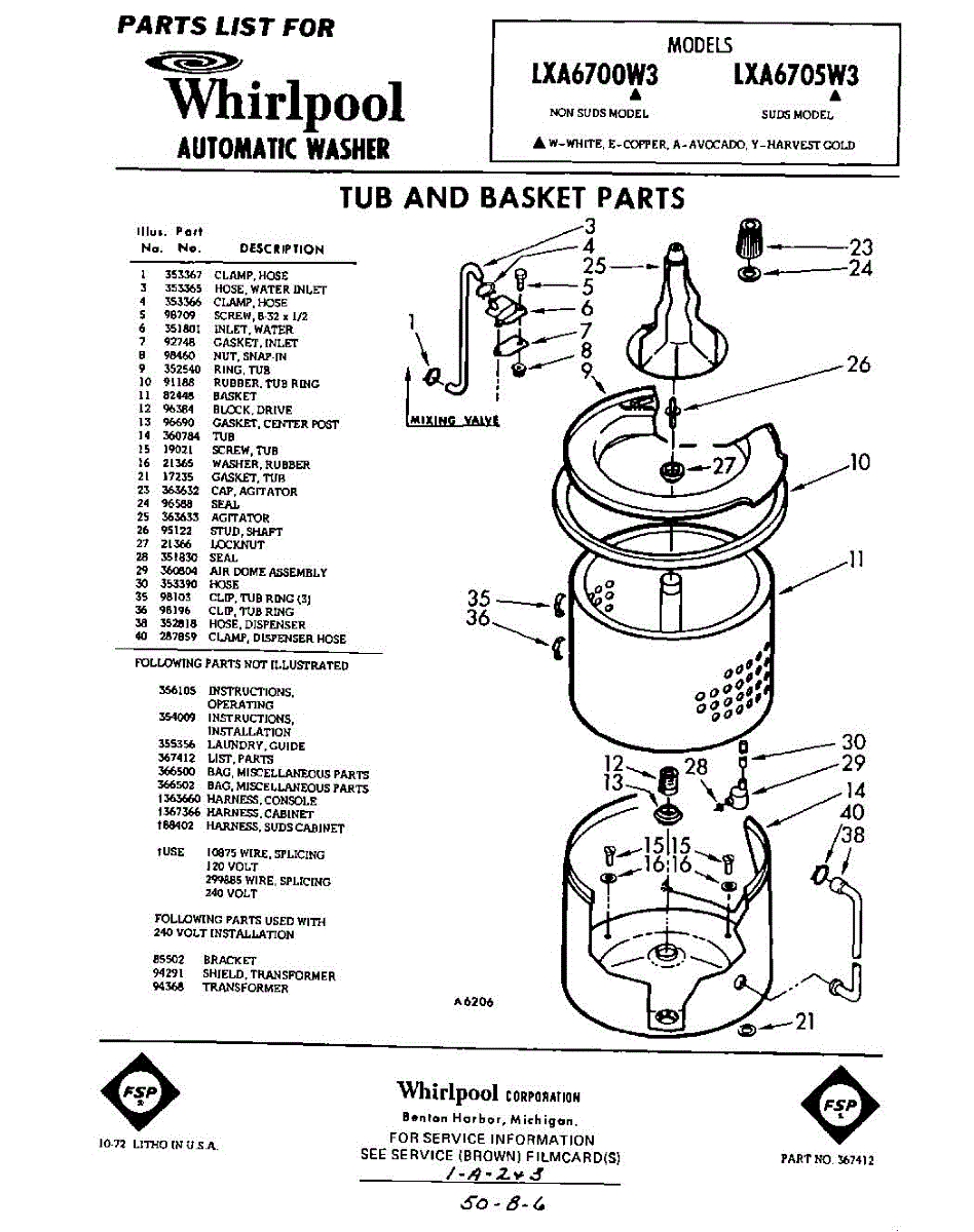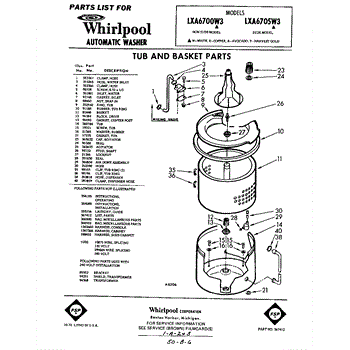 Parts for Whirlpool LXA6700W3: 01 - Tub And Basket, Lit / Optional Parts