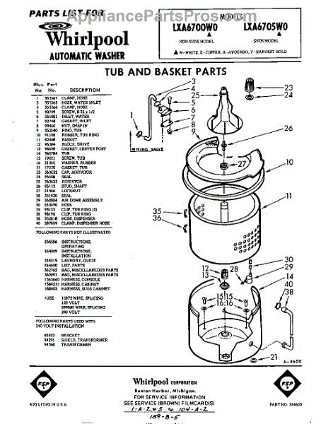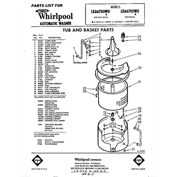 Parts for Whirlpool LXA6705W0: 01 - Tub And Basket, Lit / Optional Parts