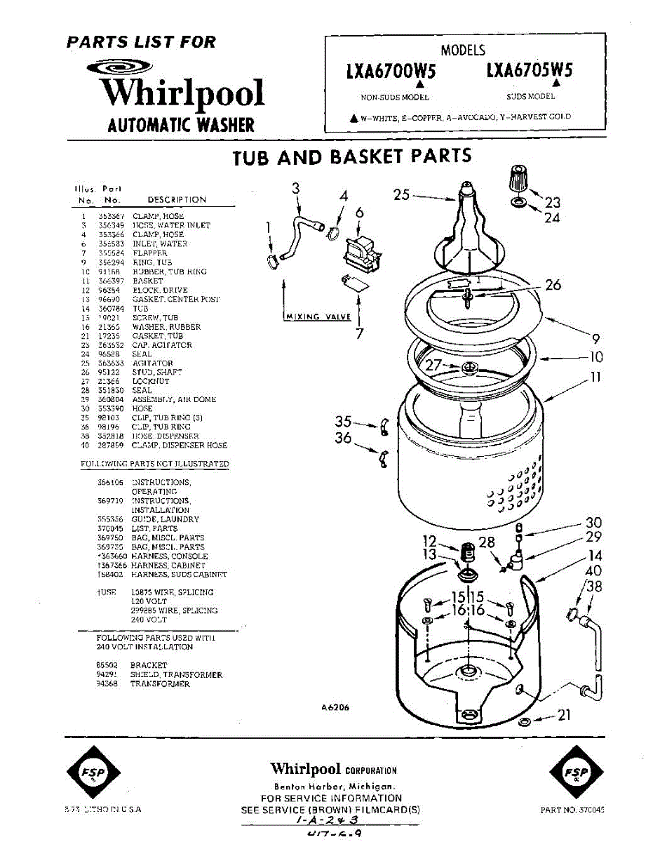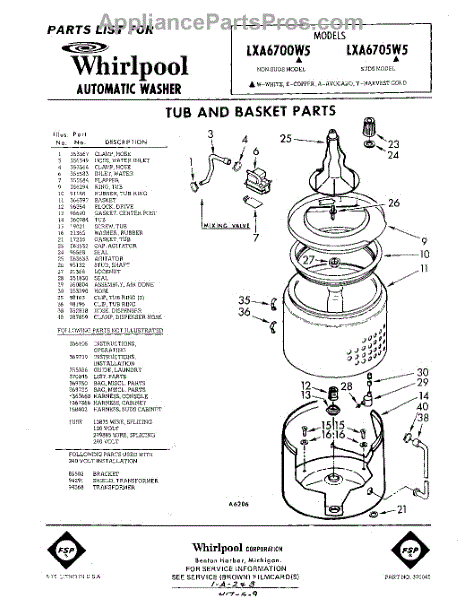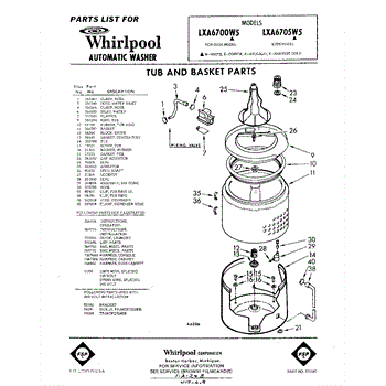 Parts for Whirlpool LXA6705W5: 01 - Tub And Basket , Lit / Optional Parts