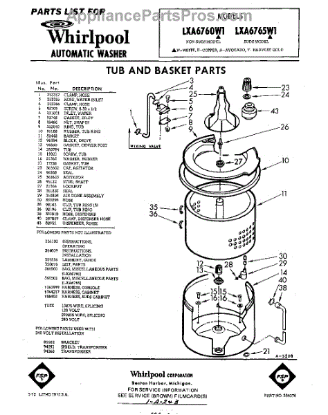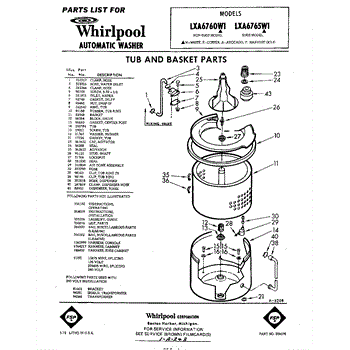 Parts for Whirlpool LXA6765W1: 01 - Tub And Basket , Lit / Optional Parts