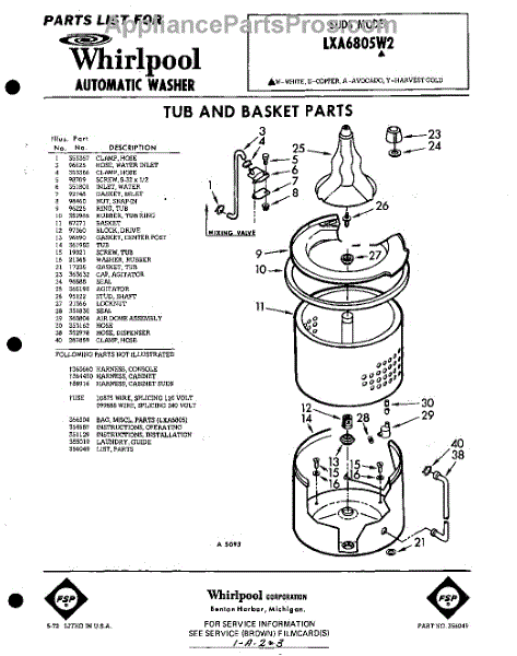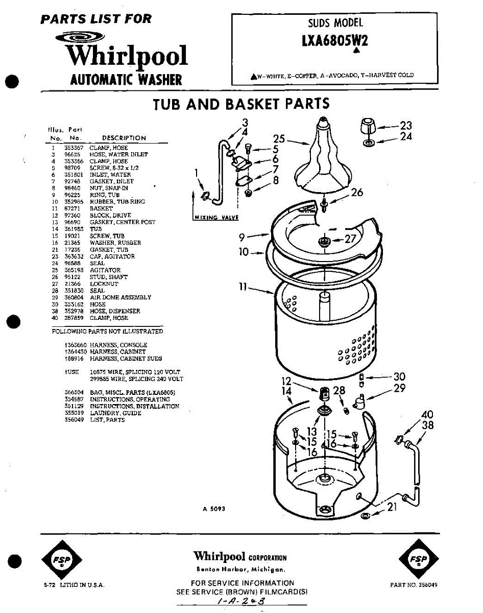 Parts for Whirlpool LXA6805W2: 01 - Tub And Basket , Lit / Optional Parts