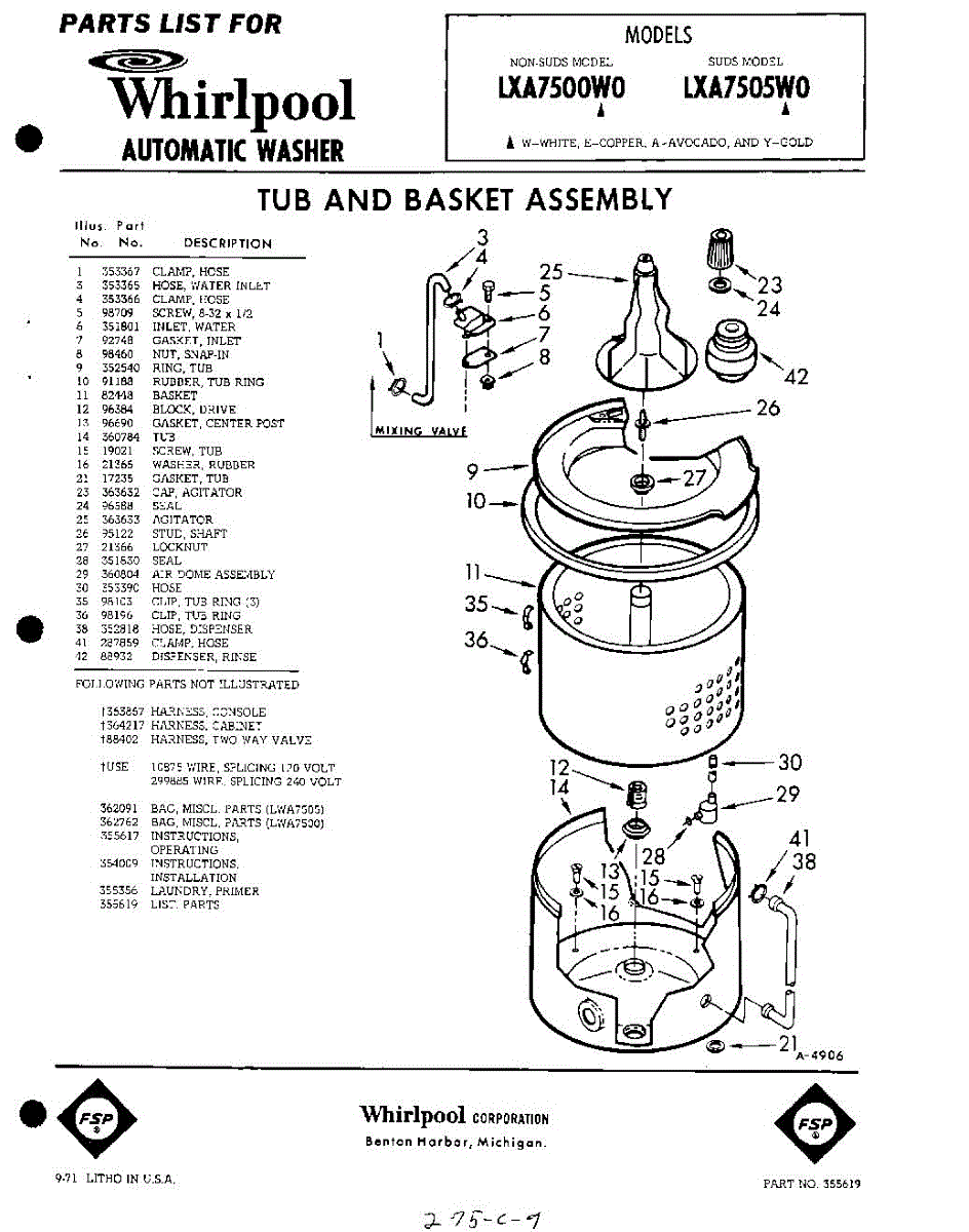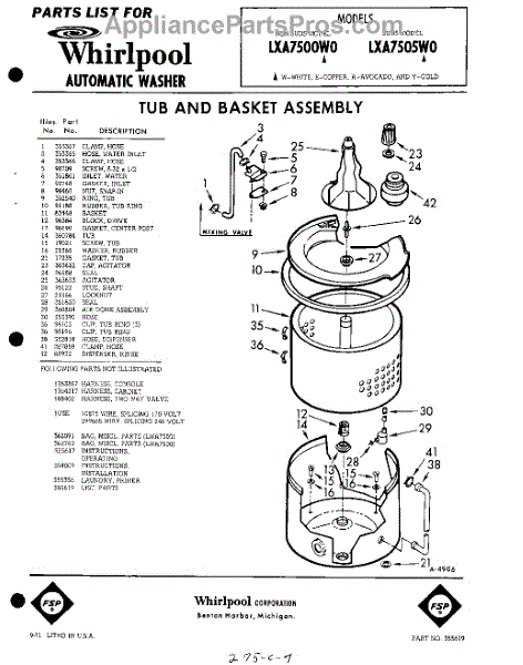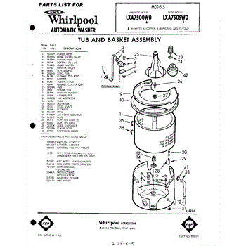 Parts for Whirlpool LXA7505W0: 01 - Tub And Basket , Lit / Optional Parts