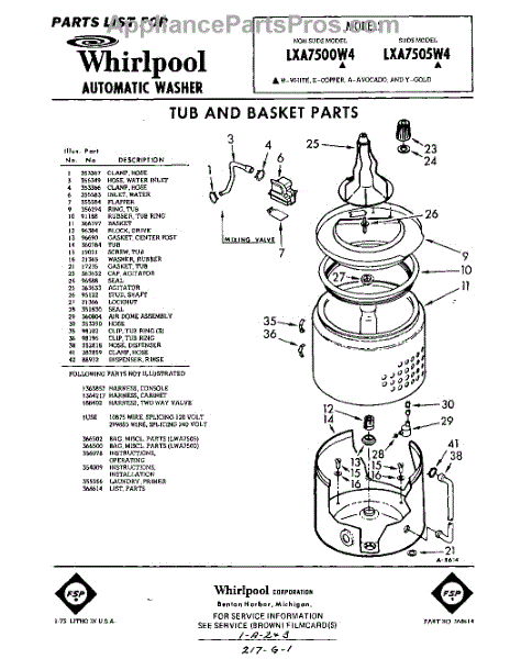 Parts for Whirlpool LXA7505W4: 01 - Tub And Basket , Lit / Optional Parts