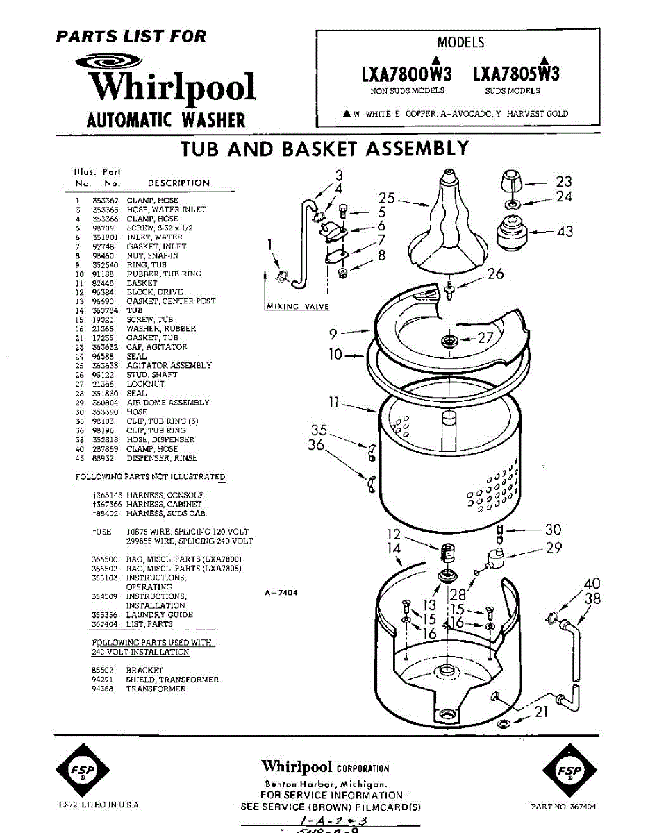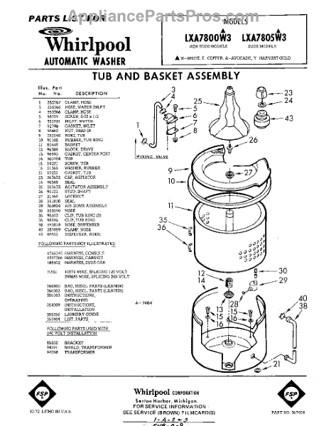Parts for Whirlpool LXA7800W3: 01 - Tub And Basket , Lit / Optional Parts