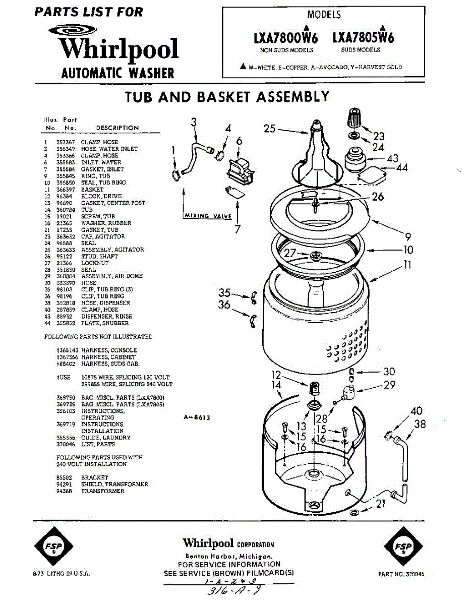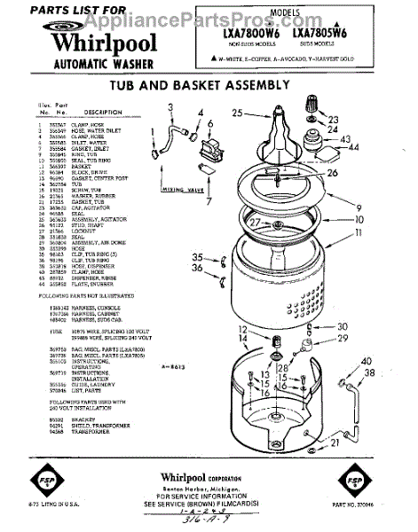 Parts for Whirlpool LXA7800W6: 01 - Tub And Basket , Lit / Optional Parts