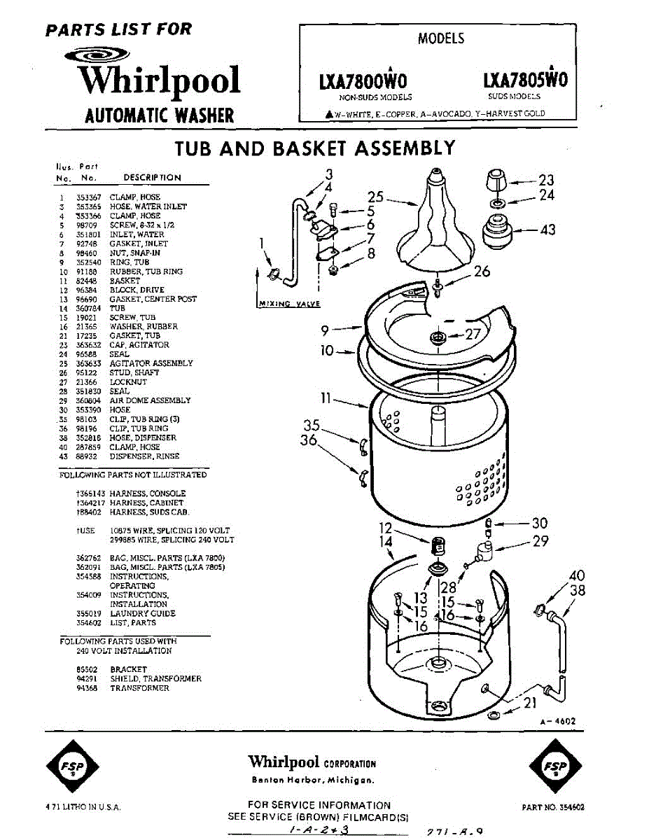 Parts for Whirlpool LXA7805W0: 01 - Tub And Basket, Lit / Optional Parts