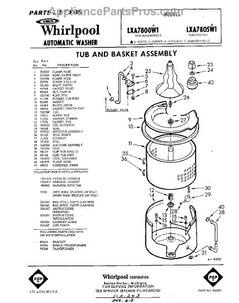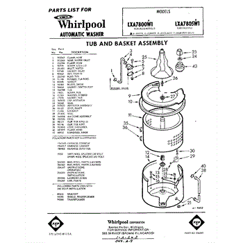 Parts for Whirlpool LXA7805W1: 01 - Tub And Basket , Lit / Optional Parts