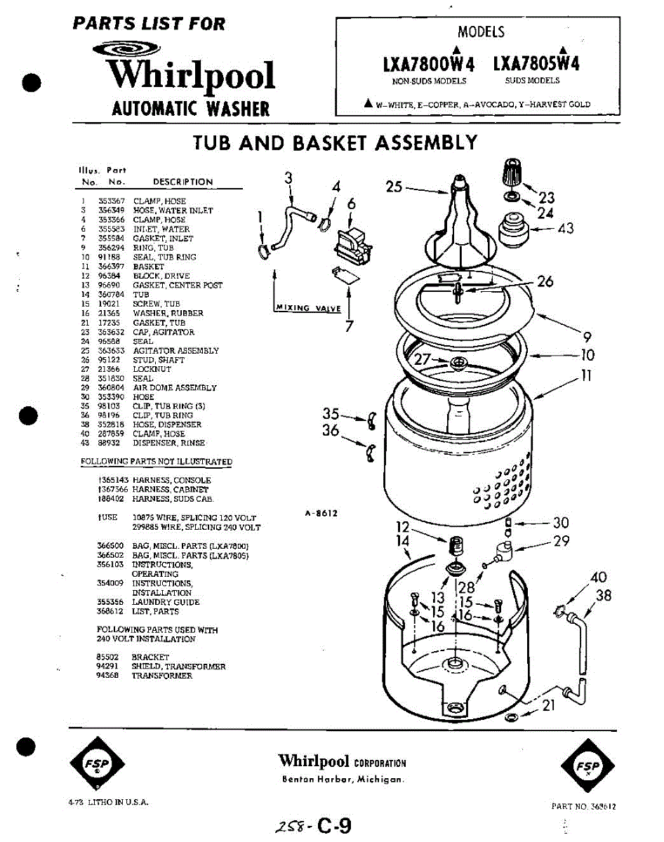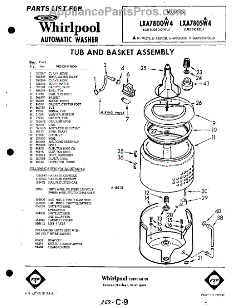 Parts for Whirlpool LXA7805W4: 01 - Tub And Basket , Lit / Optional Parts