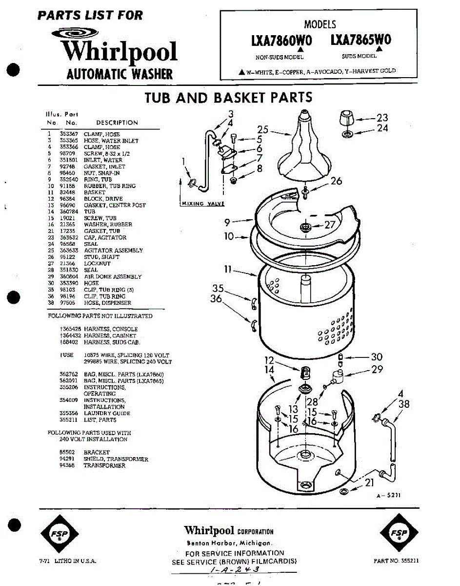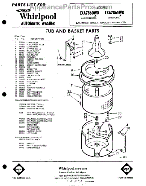 Parts for Whirlpool LXA7860W0: 01 - Tub And Basket, Lit / Optional Parts