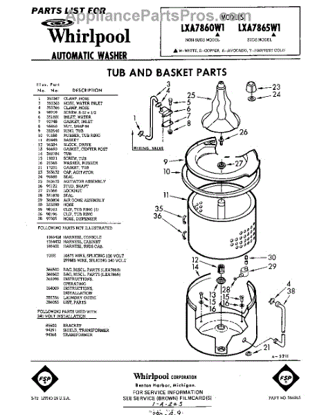 Parts for Whirlpool LXA7860W1: 01 - Tub And Basket , Lit / Optional Parts