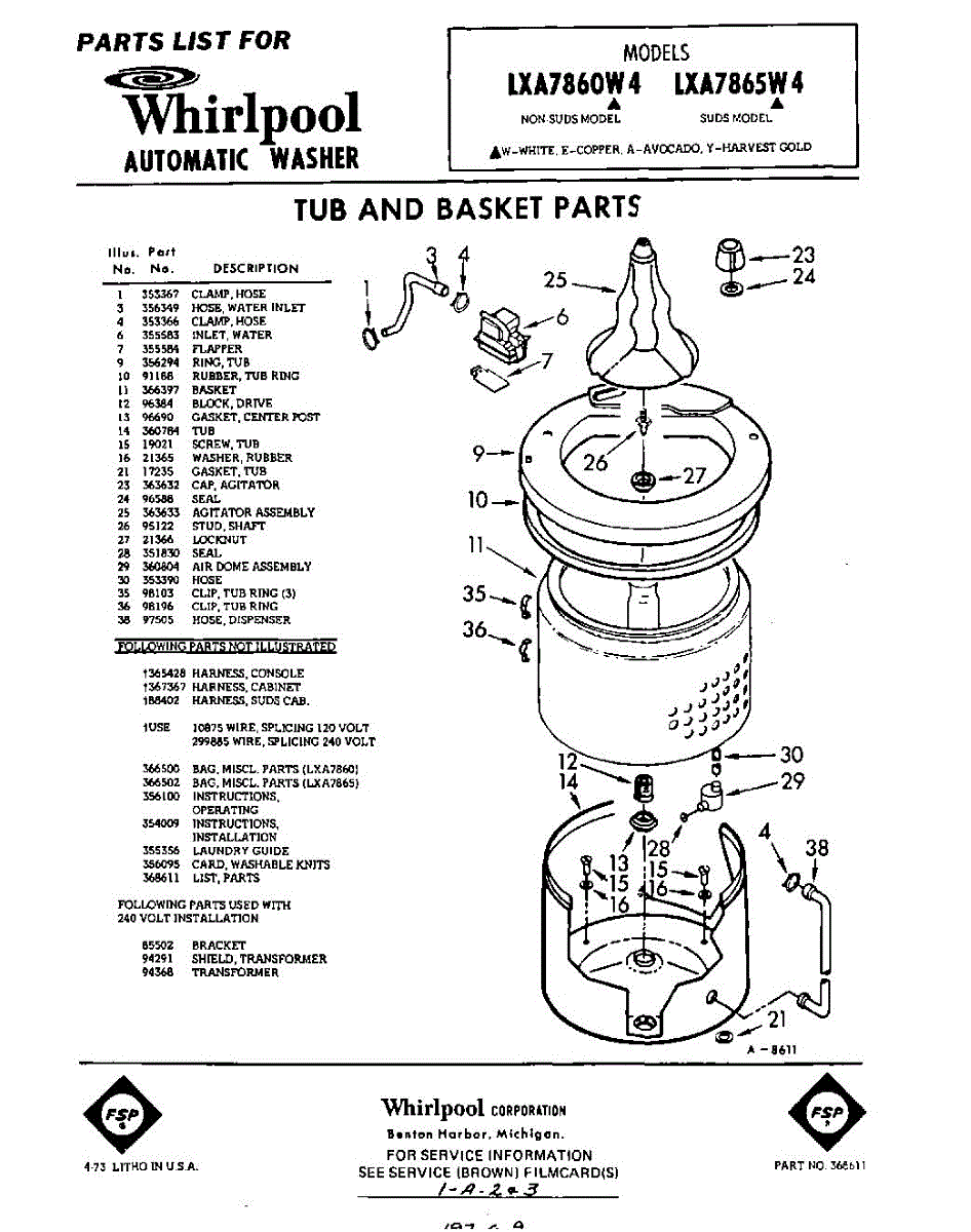 Parts for Whirlpool LXA7860W4: 01 - Tub And Basket , Lit / Optional Parts