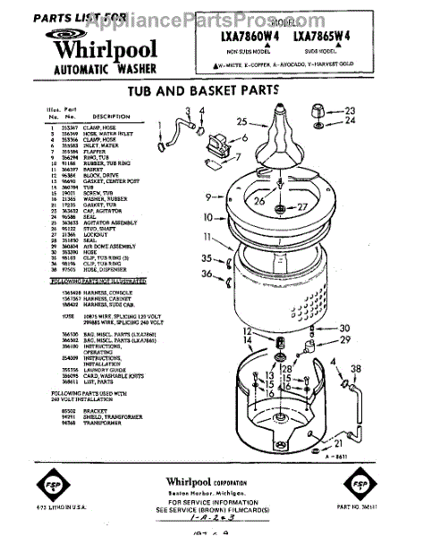 Parts for Whirlpool LXA7865W4: 01 - Tub And Basket , Lit / Optional Parts