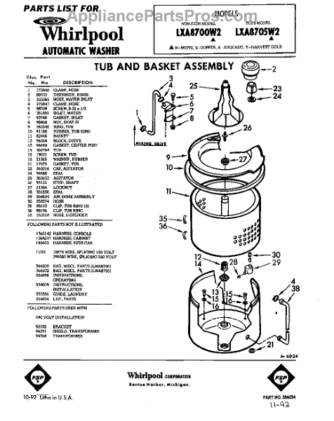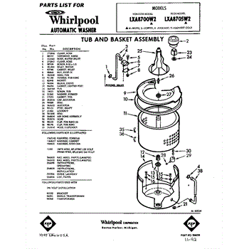 Parts for Whirlpool LXA8700W2: 01 - Tub And Basket, Lit / Optional Parts