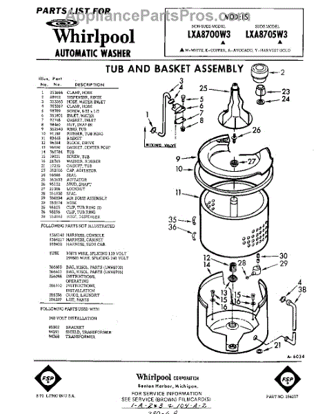 Parts for Whirlpool LXA8700W3: 01 - Tub And Basket , Lit / Optional Parts