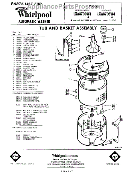 Parts for Whirlpool LXA8700W4: 01 - Tub And Basket , Lit / Optional Parts