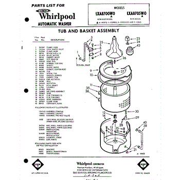 Parts for Whirlpool LXA8705W0: 01 - Tub And Basket , Lit / Optional Parts