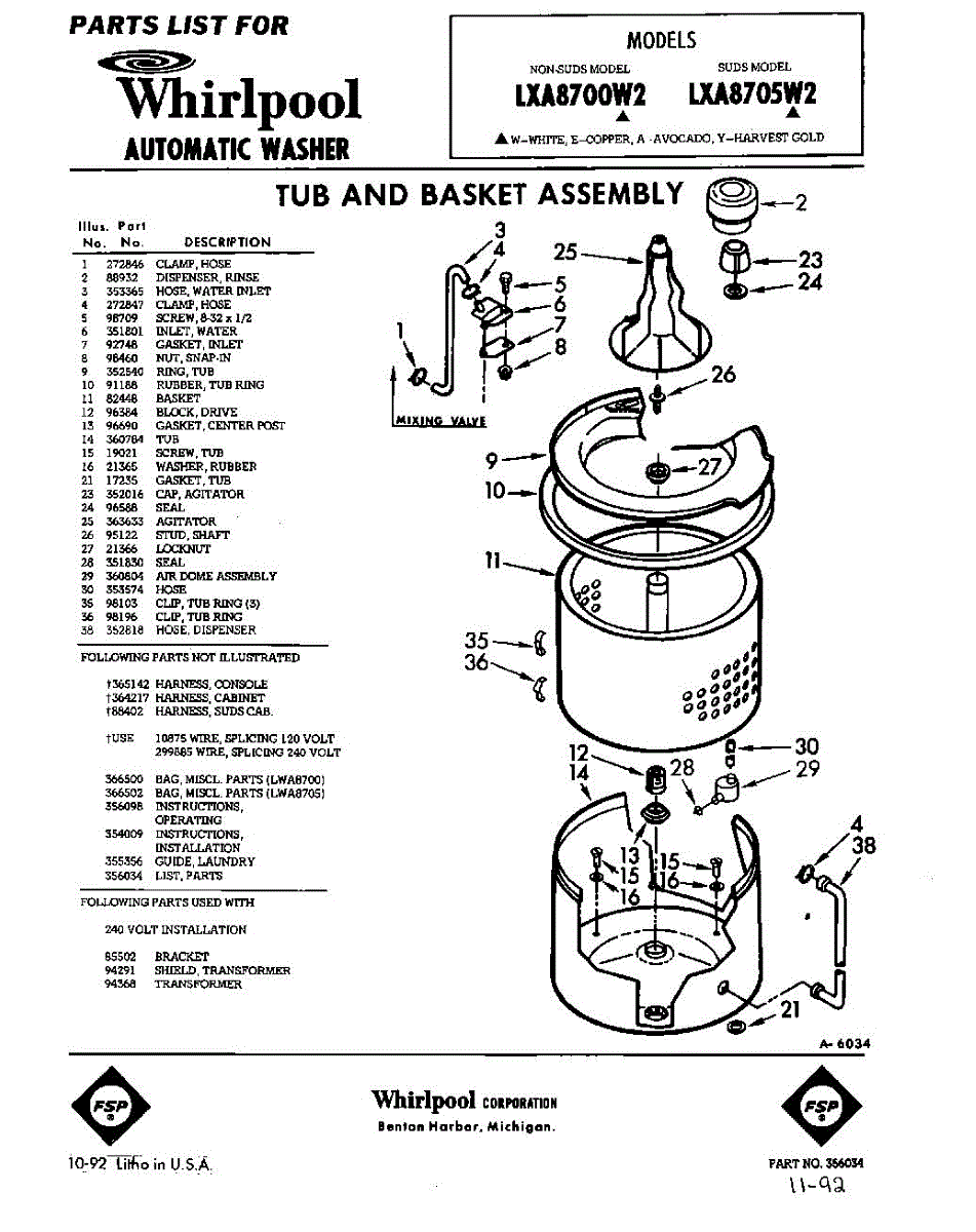 Parts for Whirlpool LXA8705W2: 01 - Tub And Basket, Lit / Optional Parts