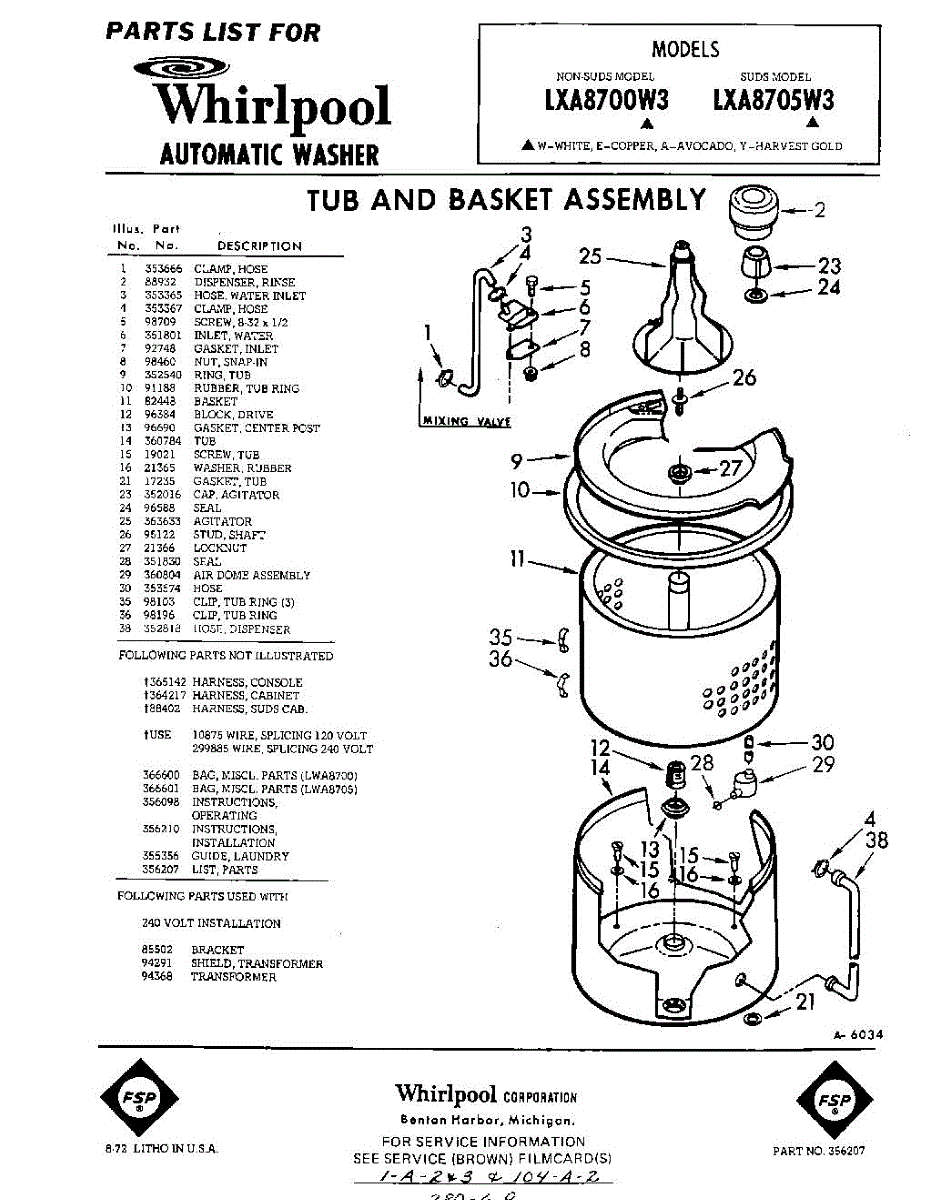 Parts for Whirlpool LXA8705W3: 01 - Tub And Basket , Lit / Optional Parts