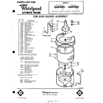 Parts for Whirlpool LXA8740W0: 01 - Tub An Basket , Lit / Optional Parts
