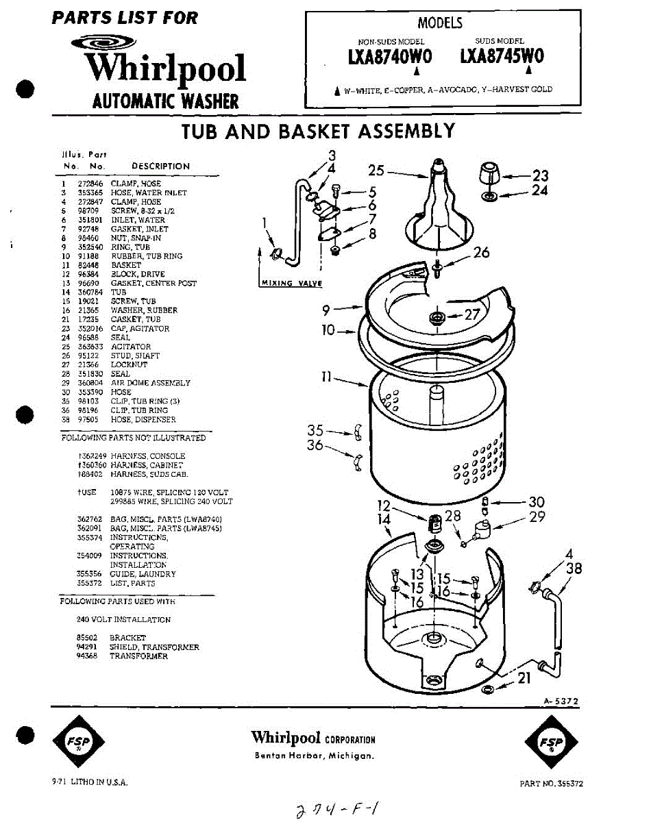 Parts for Whirlpool LXA8745W0: 01 - Tub An Basket , Lit / Optional Parts