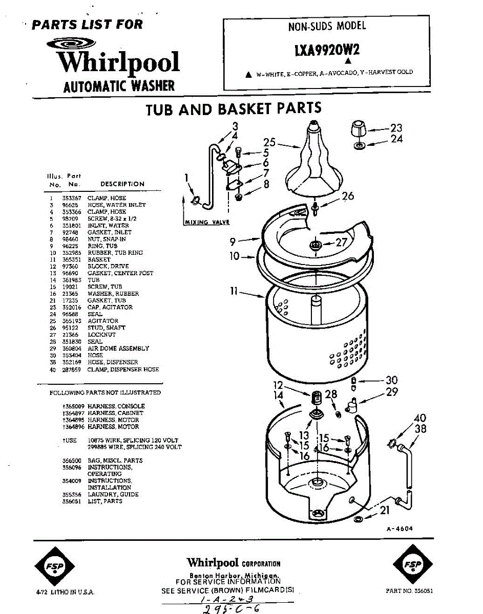 Parts for Whirlpool LXA9920W2: 01 - Tub And Basket, Lit / Optional Parts