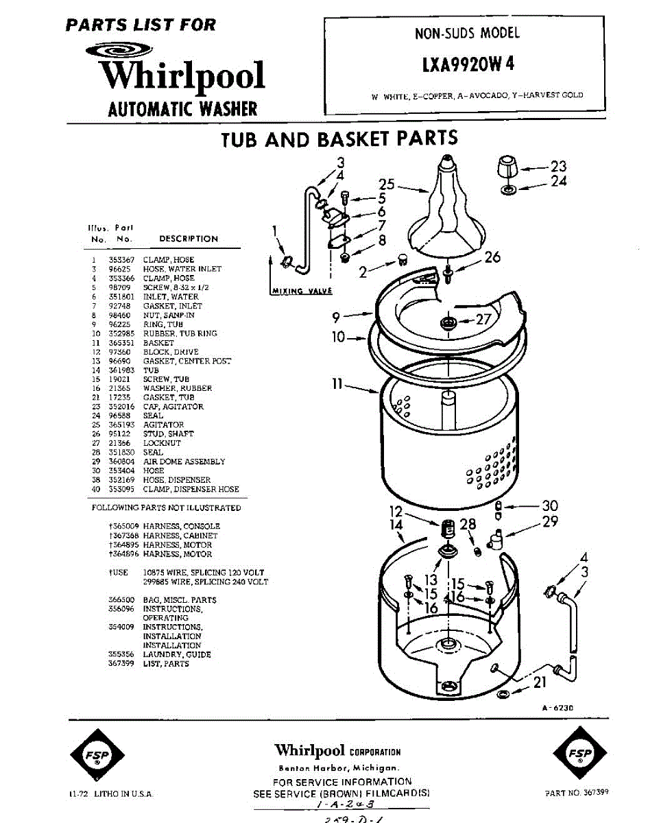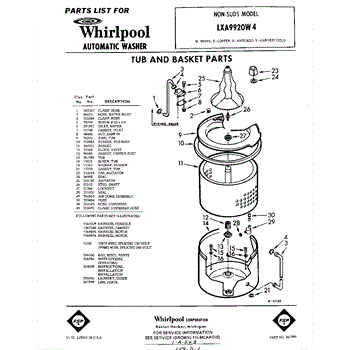 Parts for Whirlpool LXA9920W4: 01 - Tub And Basket , Lit / Optional Parts