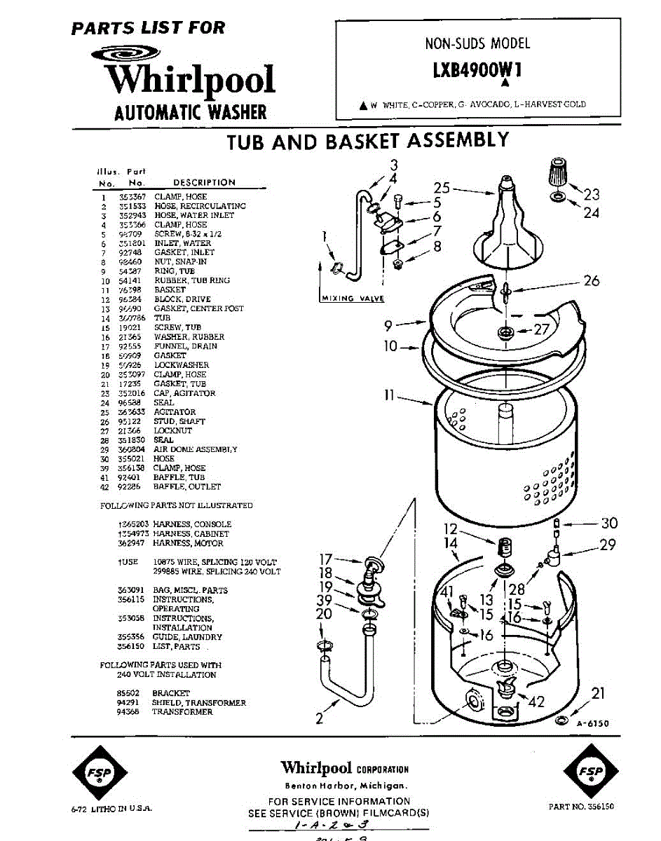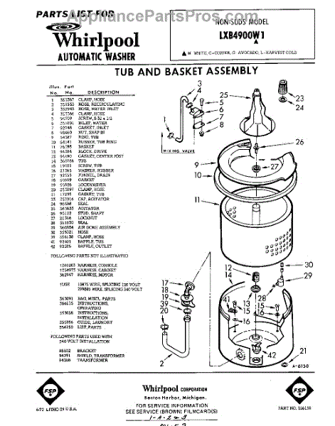 Parts for Whirlpool LXB4900W1: 01 - Tub And Basket , Lit / Optional Parts