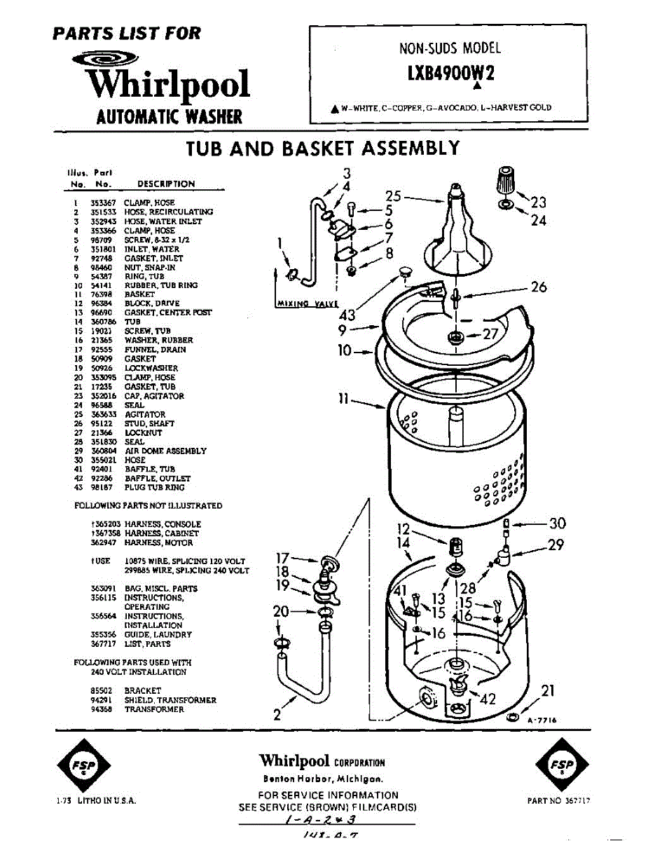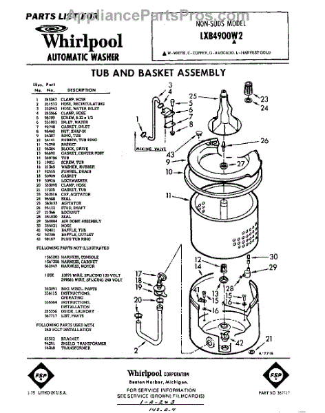 Parts for Whirlpool LXB4900W2: 01 - Tub And Basket , Lit / Optional Parts
