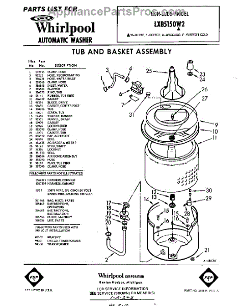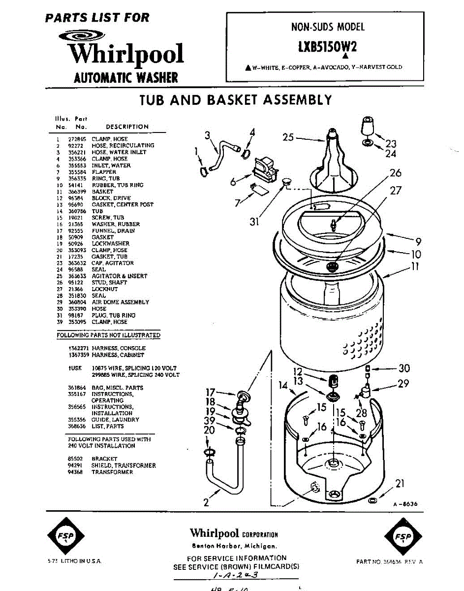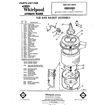 Parts for Whirlpool LXB5150W2: 01 - Tub & Basket, Lit / Optional Parts