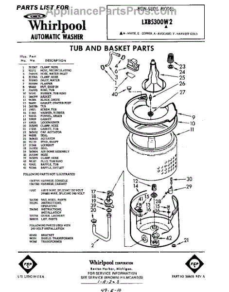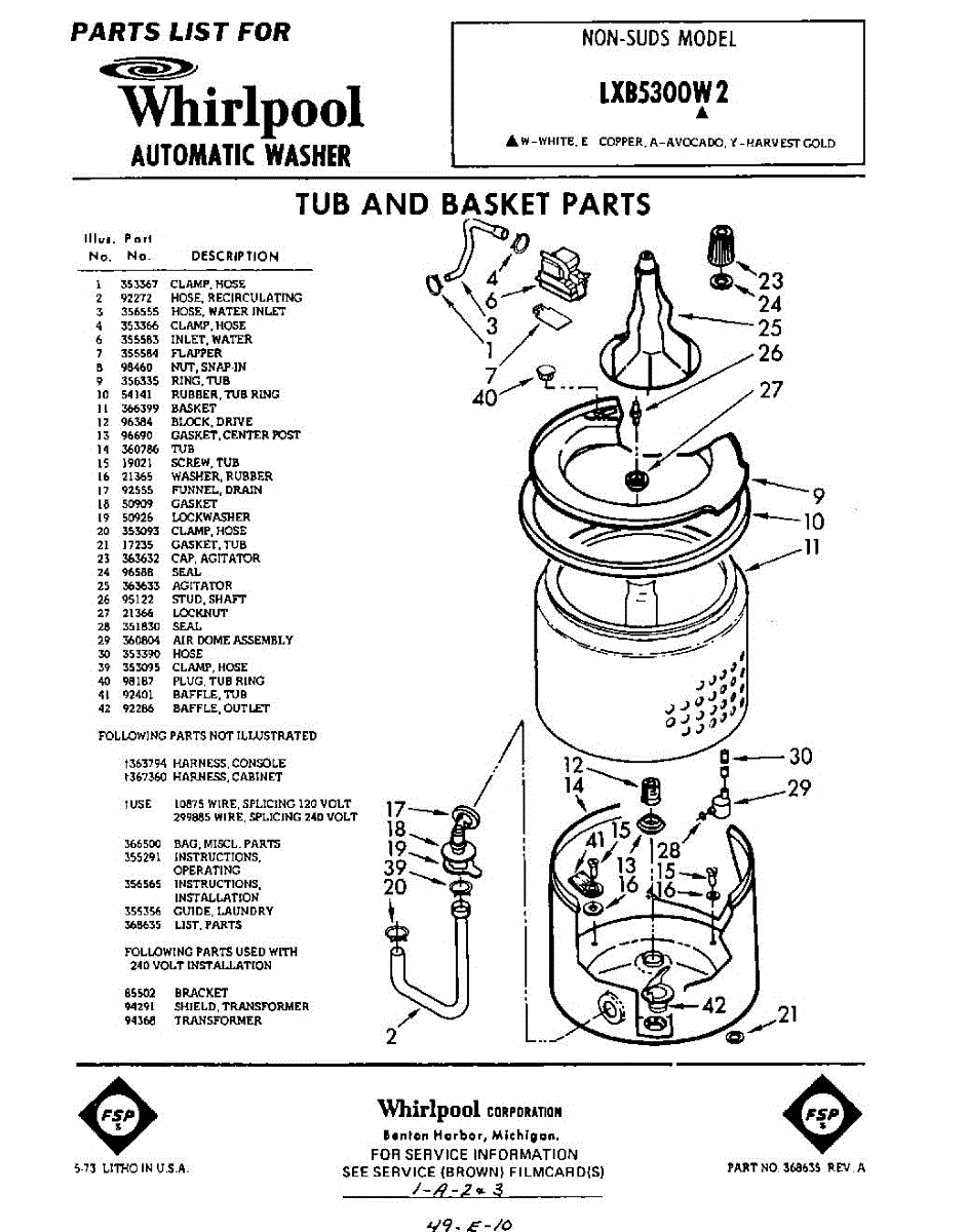 Parts for Whirlpool LXB5300W2: 01 - Tub And Basket, Lit / Optional Parts