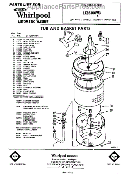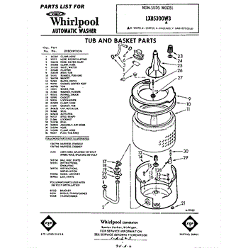 Parts for Whirlpool LXB5300W3: 01 - Tub And Basket, Lit / Optional Parts