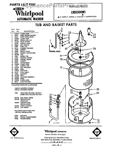 Parts for Whirlpool LXB5500W1: 01 - Tub And Basket , Lit / Optional Parts